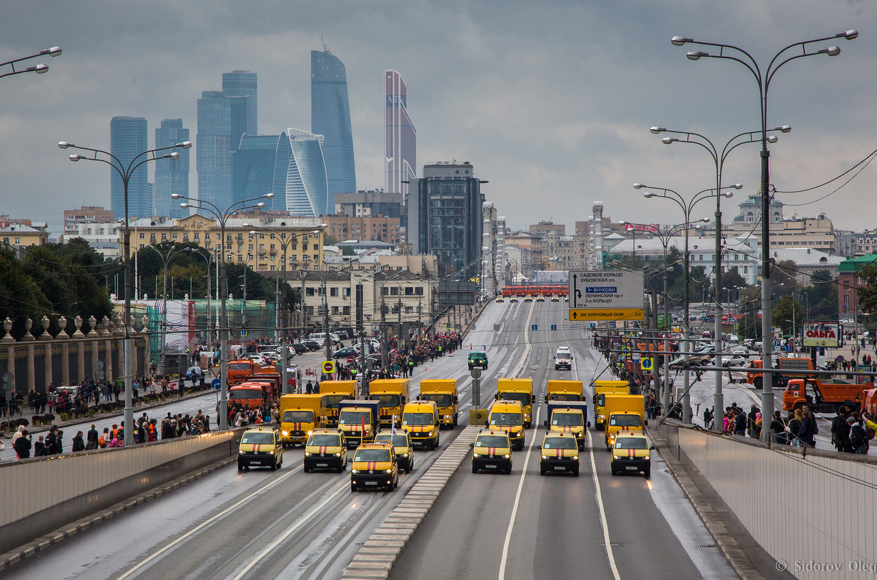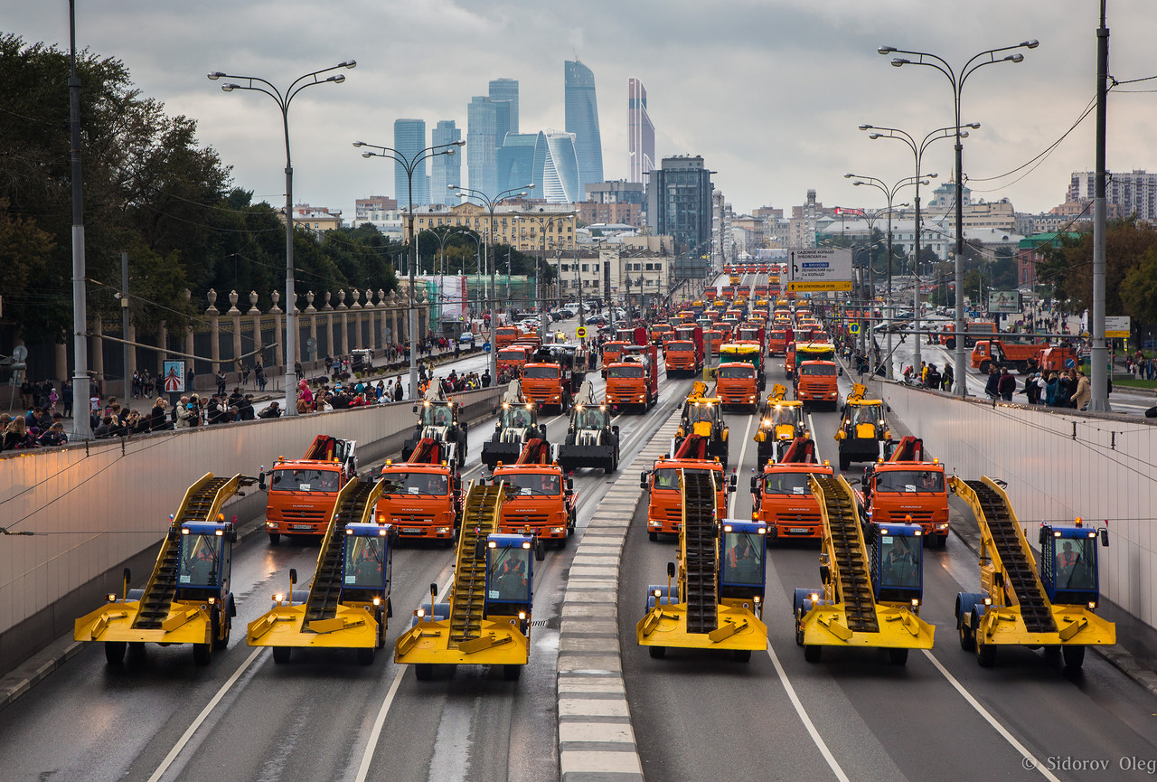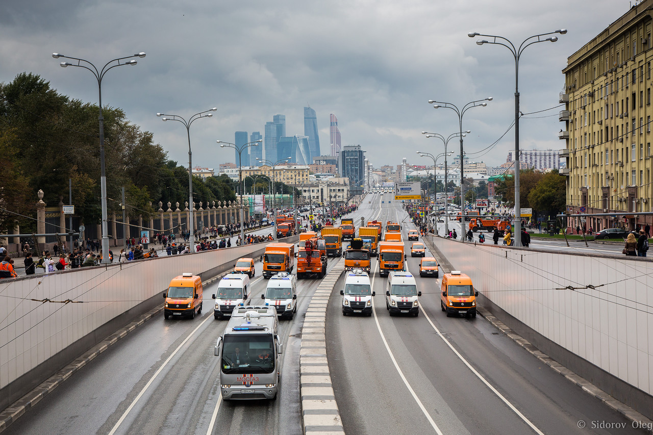 662 машины одновременно прошли по улицам города, вживую и на огромных экранах москвичи и гости города могли увидеть разные модели городских автобусов, поливальных и уборочных машин, вакуумных пылесосов, мусоровозы, машины скорой помощи и пожарная спецтехника, тягачи и эвакуаторы, автокраны, фургоны, самосвалы и колесные тракторы, бетономешалки и экскаваторы, патрульные машины и мотоциклы ГИБДД и многое, многое другое.