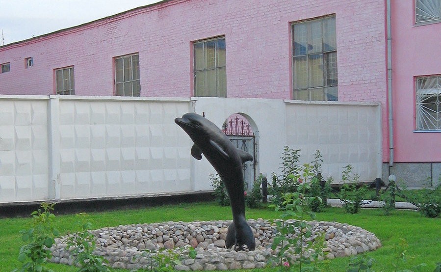 Фонтан "Черный дельфин" перед административным зданием колонии ИК-6 УФСИН России в городе Соль-Илецк Оренбургской области