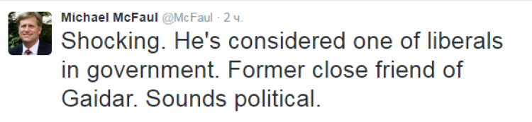 Майкл Макфол, бывший посол США в РФ, в своем Twitter написал, что был шокирован известием об аресте. Макфол заметил, что Улюкаев считается «одним из либералов в правительстве», поэтому не мог ожидать взяточничества от министра экономики.