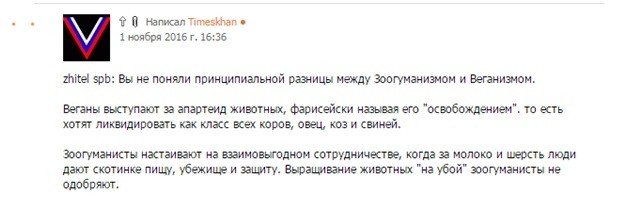Андрей Тимесков крайне негативно относится к Веганам и расценивает их в качестве антипода Зоогуманистам.