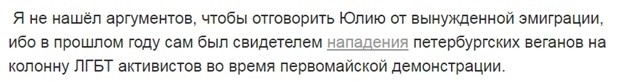 Правда, как позже выяснилось, «голодовка», по мнению зоогуманиста это не отказ от пищи вообще, а как автор сам заявил на сайте «ЭХО МОСКВЫ»