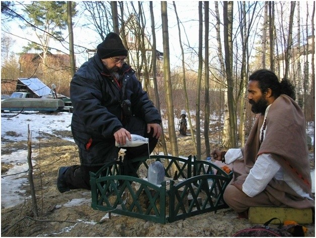Когда приносить жертвы индуистскому идолу надоедает, Андрей перекрашивается в родновера, наряжается в языческие рубища и воздаёт хвалу языческим богам.
