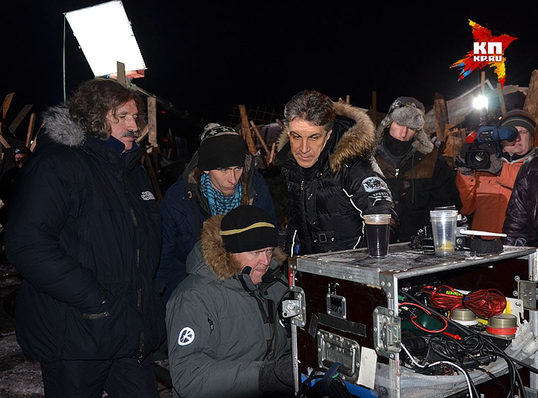 В вагончике за монитором - режиссер Алексей Пиманов. Он отдает необходимые указания, рассказывает, как шли съемки картины.