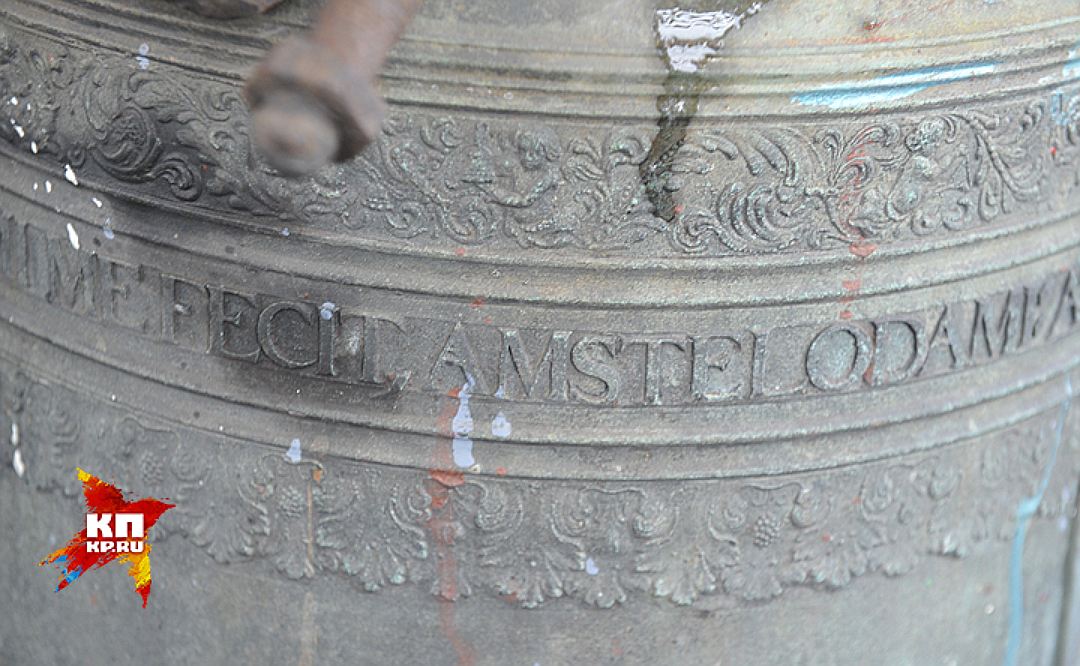 Там самый интересный колокол стоит на десятом ярусе, просто на полу. Это колокол, который Петр I купил во время Великого посольства, был отлит в 1697 году в Голландии.