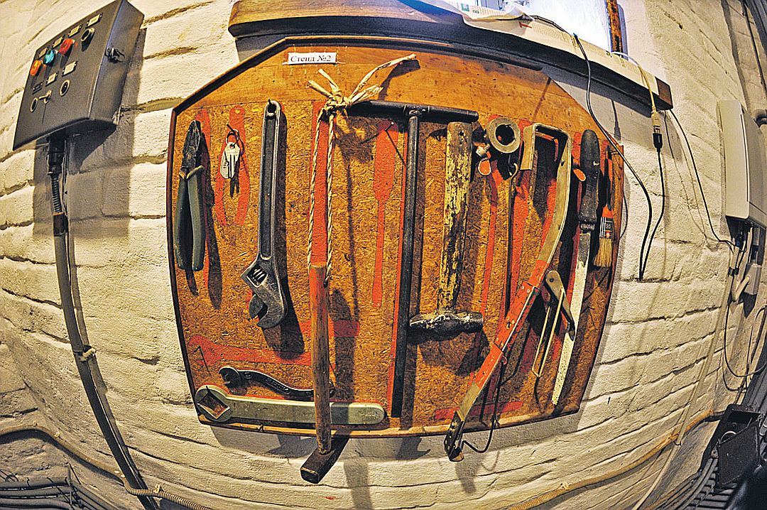 подкручивают и подтягивают старинные гайки, подправляют заклепки.
