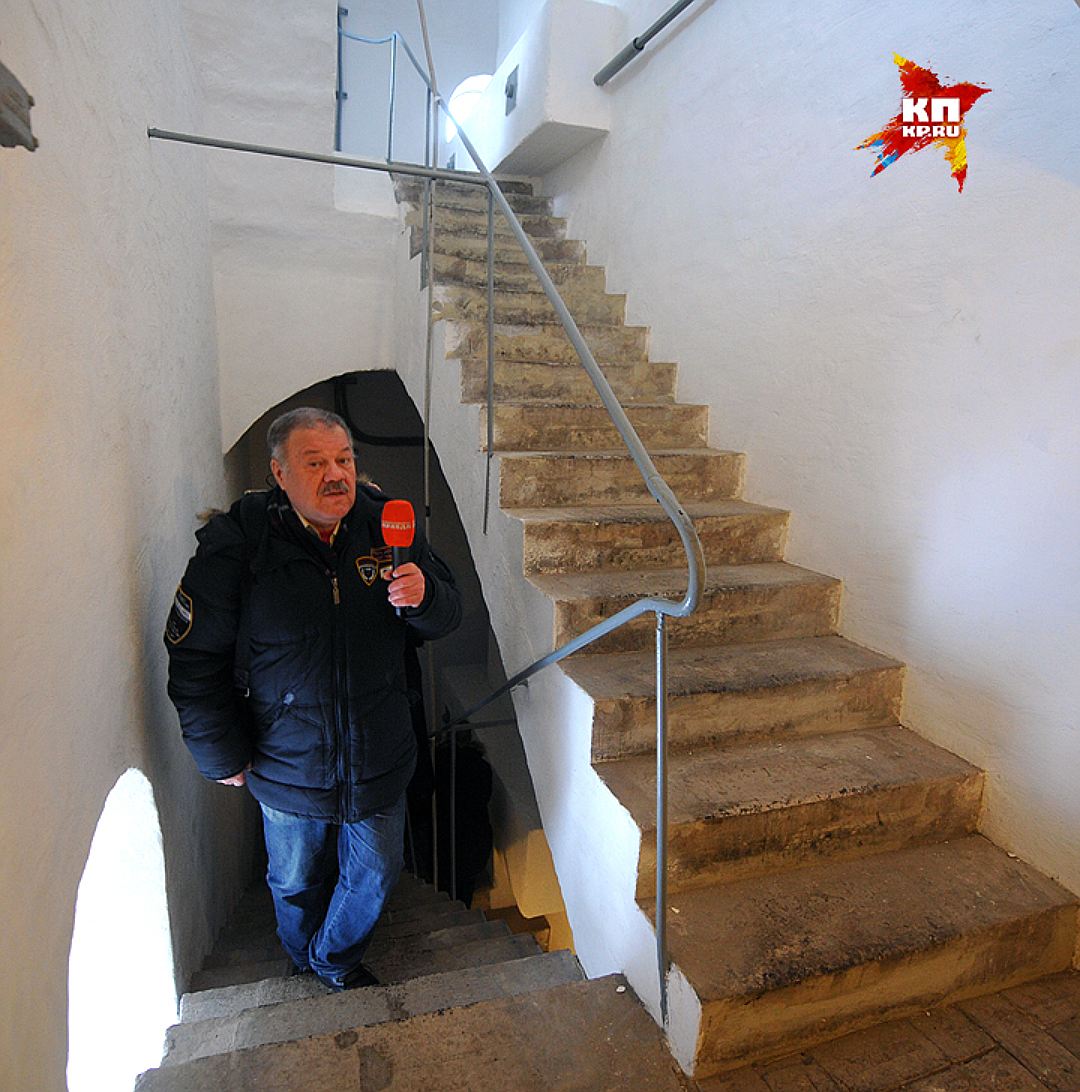- Надо сказать, что сейчас на 20-этажных домах лестницы комфортнее, чем на Спасской башне. Все-таки это оборонительное укрепление. Поэтому - высоченные белокаменные ступеньки, винтовые чугунные лестницы. Ходить менее комфортно, чем в современных домам.