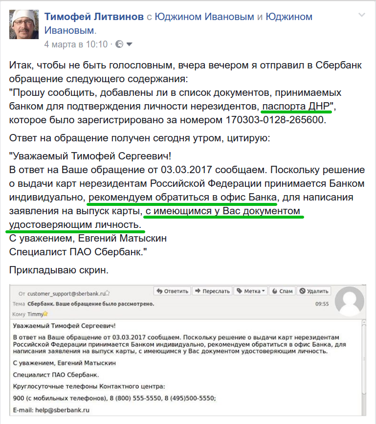 «В ближайшие дни все процессы для адаптации приема нового вида документов будут завершены, после чего Сбербанк будет готов обслуживать лиц, обратившихся с паспортами ДНР и ЛНР, во всех филиалах банка», — заявил вчера представитель пресс-службы Сбербанка.