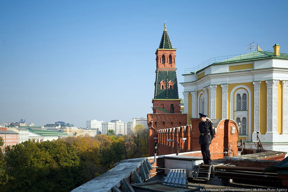 1. Во-первых, Кремль неплохо охраняется. Все утыкано датчиками и камерами. Я одно время сам гулял по башням и стенам… Вот, смотрите, стена с обратной стороны.