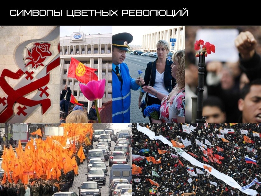 Принцип разделения «свой-чужой» был положен в основу технологии «цветной революции». Появился термин относительно недавно. Люди, участвовавшие в цветной революции, использовали специальные символы: в Грузии — розы, в Киргизии — тюльпаны, в Беларуси — васильки, в Мексике — кактусы, в Тунисе — жасмины, на Украине — оранжевые лоскуты материи, в Египте — финики, в России — белые ленты. Это такая «умная» замена форме бойца на войне.