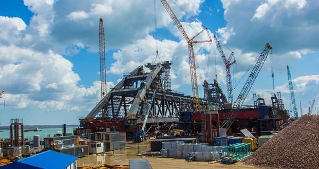 Для сборки данной конструкции создана специальная технологическая площадка, которая впоследствии станет частью основного сооружения. Судоходный пролет – самый сложный элемент моста через Керченский пролив.