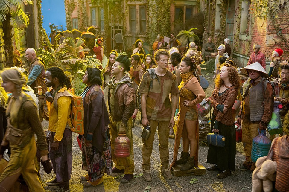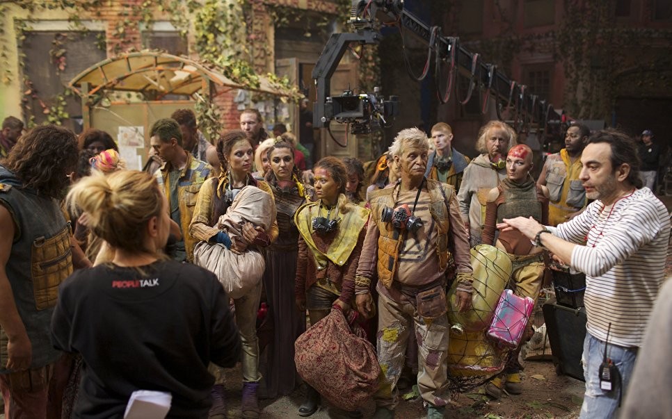 Все это можно увидеть в павильоне № 1 "Мосфильма", где сейчас выстроены кварталы Москвы 2070 года. После глобальной катастрофы климат на планете изменился, многие страны ушли под воду, тысячи переселенцев хлынули в Москву, которая оказалась в тропическом поясе. Ни пробок, ни серых пуховиков, ни угрюмых лиц — постапокалиптическая столица выглядит приятнее современной.
