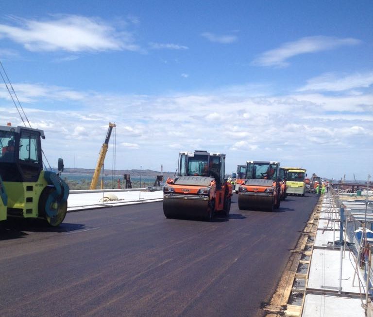 «Покрытие у нас двуслойное, сегодня мы укладываем нижний слой, верхний слой будет уложен по завершению всех работ основных конструкторов моста. Мы на этом мосту применяем инновационные технологии проверки степени уплотнения асфальтобетонной смеси. Стандартно, как правило, дорожники отбирают «керны» или вырубки из покрытия, которые потом как обычно никто не заделывает, здесь мы применяем технологию неразрушающего контроля. Она нам позволяет повысить объем и достоверность», - поясняет главный инженер ФКУ Упрдор «Тамань» Росавтодора Юрий Сафонов.