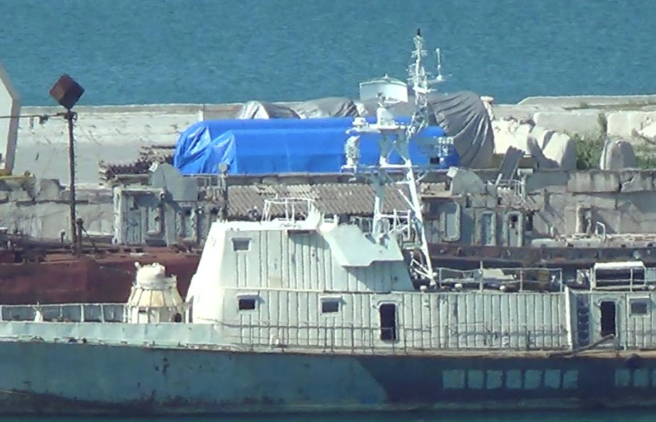 Под этим синим брезентом, как утверждает Reuters, находятся газовые турбины для электростанции. Кадр из видео REUTERS-TV
