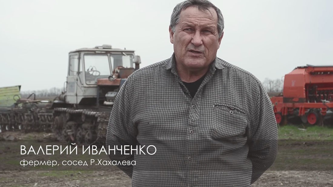 Это сосед Хахалевых. У него тоже землю забрали. Стоит на фоне ржавых тракторов и комбайнов...