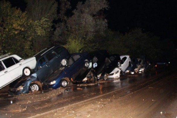 В районе села Дачное (на участке трассы от села Грушевка до Судака) из-за селя оказались в заторе несколько десятков машин. Многие автомобили были опрокинуты в кювет. Для регулирования дорожной ситуации на место были направлены спасатели МЧС и сотрудники ГИБДД.
