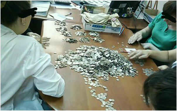 Всего было шесть или семь мешков с монетами, а общая сумма долга с учетом исполнительского сбора составила 46,7 тысячи рублей.