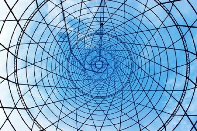 Гиперболоидные сетки шуховских башен на Оке, вид снизу, 1989 год