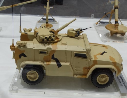 Также на крыше бронеавтомобиля видны специальные датчики комплекса оптико-электронного противодействия и увеличено количество дымовых гранат на башне.