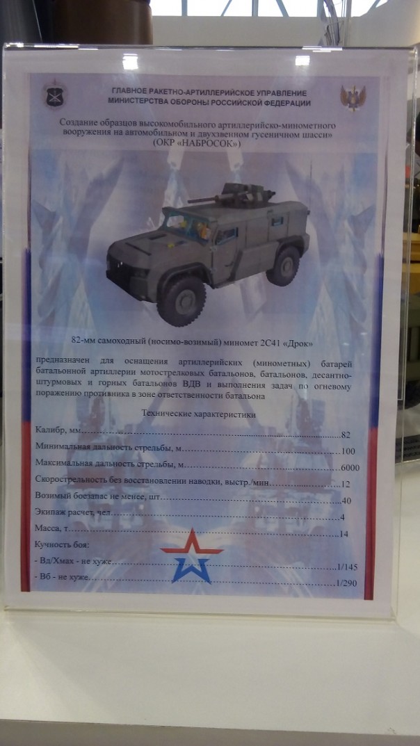 82-мм самоходный (возимо-носимый) миномет 2С41 "Дрок". Изображение с презентационного плаката Главного ракетно-артиллерийского управления Министерства обороны Российской Федерации в экспозиции Международного военно-технического форума "Армия-2017" Источник