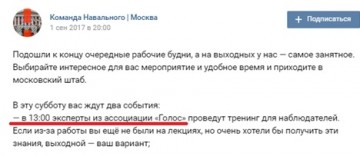 Так, например, на тренингах «Голоса» «надсмотрщиков» предупреждают, что им запрещается использовать на участках для голосования атрибуты и символику, связанную с Алексеем Навальным. И более того, говорить о том, что он представляет тут интересы «борца с коррупцией» Навального.