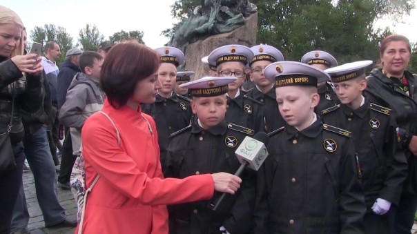 Зрителей торжества, нужно сказать, было много. Мероприятие ежегодно вызывает немалый интерес у жителей города, которые приходят посмотреть церемонию. И, конечно, на площади были родители, сестры, братья, бабушки и дедушки мальчишек, в столь юном возрасте выбравших служение морскому флоту. Отеческие чувства испытывал даже начальник Кронштадтского морского кадетского военного корпуса Николай Довбешко. В этом бывалый морской офицер признался съемочной группе ФАН-ТВ: