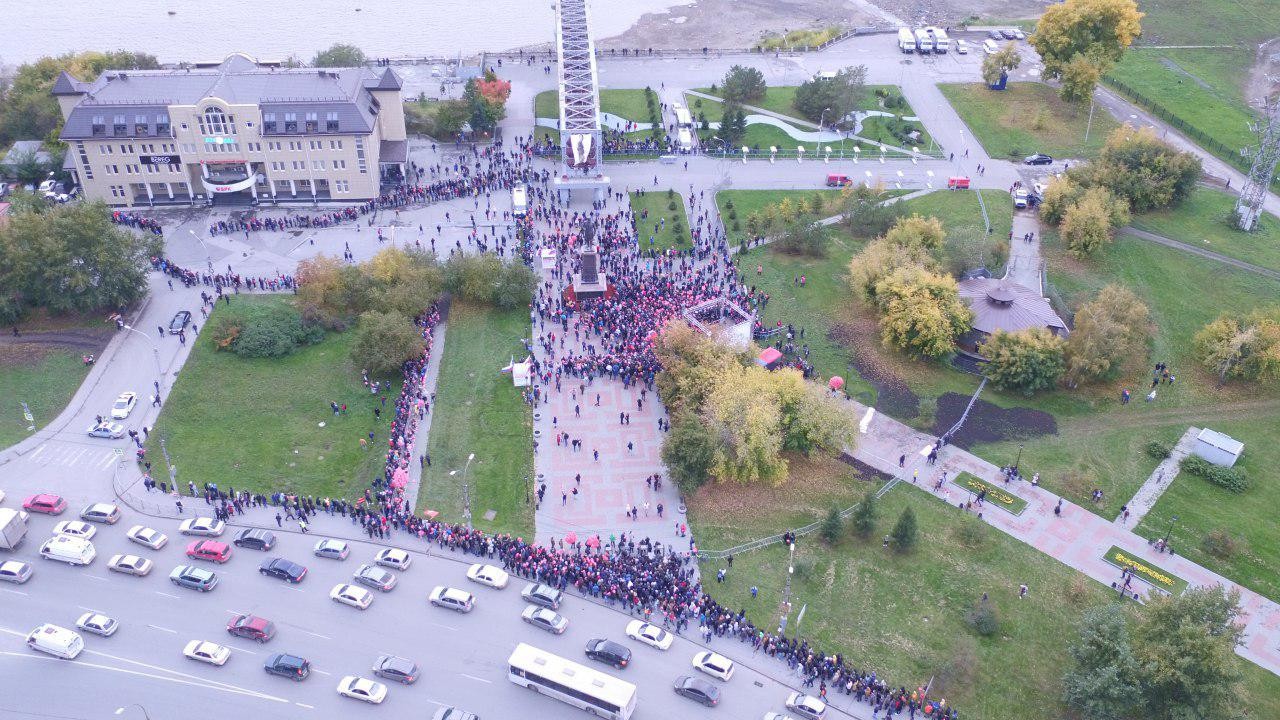 Новосибирск, который стал вторым пунктом посещения в поиске электората на карте Навального, «отработал» за миролюбивый Омск и, по идее, отбил у Лёши всякое желание ехать дальше. Ведь в третьем городе с таким развитием событий действительно могут уже и побить. Его здесь действительно встретили «по-царски», вывесив фактически на самой сцене баннер с полуголым Навальным, обрюзгшим до неприличия, и надписью «Сисян 2018».