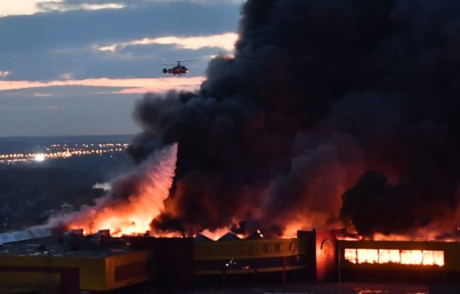 Над тушением масштабного пожара работают в том числе два вертолёта. Ранее сообщалось, что задымление началось с цокольного этажа. Теперь уже поступает информация о том, что на подземной парковке взрываются машины. Источник