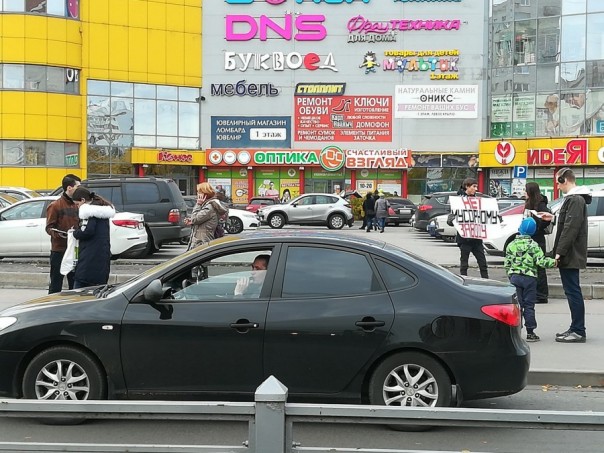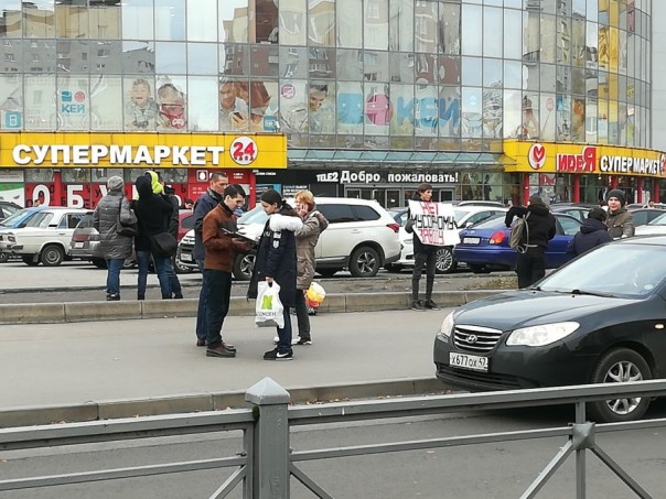 Не пройдя и ста метров от этого места, по пути на автобусную остановку, прямо напротив т.к. "Ульянка", я наткнулся на пикет собиравших подписи активистов.