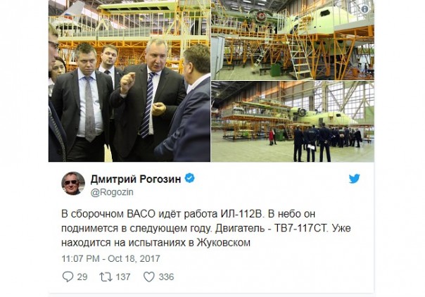 На личной странице в Twitter политик опубликовал новые фото из сборочного цеха Воронежского акционерного самолетостроительного общества (ВАСО). Он отметил, что новейшее воздушное судно поднимется в небо уже в 2018 году.