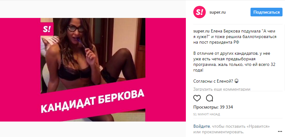 Порнодиву совсем не смущает тот факт, что согласно Конституции РФ баллотироваться в президенты можно только с 35 лет. Берковой же только 32 года.