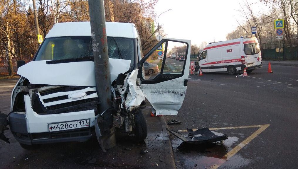 ДТП произошло на Малой Филевской улице. Микроавтобус, в котором находились дети, столкнулся с автомобилем скорой помощи, после чего ударился о фонарный столб. В результате аварии два человека получили травмы, дети не пострадали.