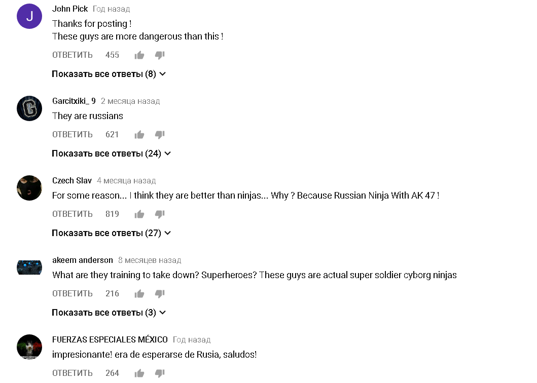 Западные пользователи разделились во мнении относительно русских спецназовцев, показанных в ролике. Многие считают, что сила русских переизбыточна для современных реалий.
