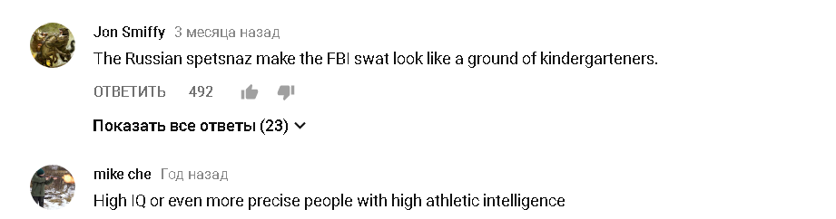 "Привет! Российский спецназ делает спецназ ФБР похожим на площадку детского садика,"- озвучивает общую канву обсуждения тренировки русского спецназа еще один из западных рафинированных обывателей.