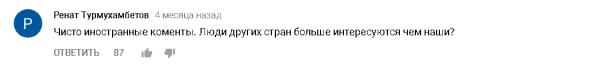 "Впечатляет! ТАКОЕ ожидаемо из России, "- не удивлен, видимо, видавший русских в реальности западный пользователь.