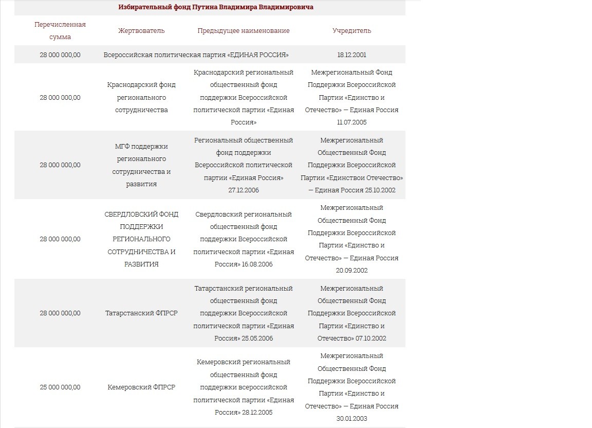 Путин стал первым кандидатом, чей избирательный счет достиг максимальной суммы 400 млн. рублей. Но как выяснилось, это не народная любовь, и даже не лояльность бизнеса. В реальности все эти деньги перечислены от «Единой России», от которой Путин так хотел избавиться, что даже пошел самовыдвиженцем.