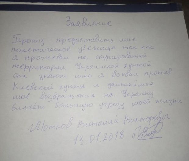 Давайте без криков караул. Судя из его заявления "воевал против киевской хунты". А почему воевал, а сейчас что, навоевался, устал? Давайте не будем закрывать глаза, что там тоже много "пены". Безусловно подавляющее большинство ополченцев истинные патриоты, но не мало и примазавшихся и криминала. Наверняка есть контакты между нашими спецслужбами и ихними. Поэтому проверить конкретного человека воевал не воевал не проблема. Так что вполне возможно, что если выдают, то значит не воевал или имеет криминальный хвост. Что греха таить, сейчас "детей лейтенанта Шмидта" на просторах нашей необъятной немало.