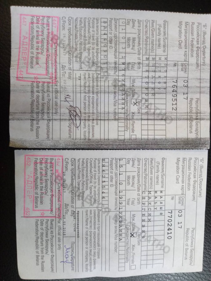 Миграционную карту на въезде въезжающий заполняет от руки; у тебя - шрифт, причем разный. Нормально?