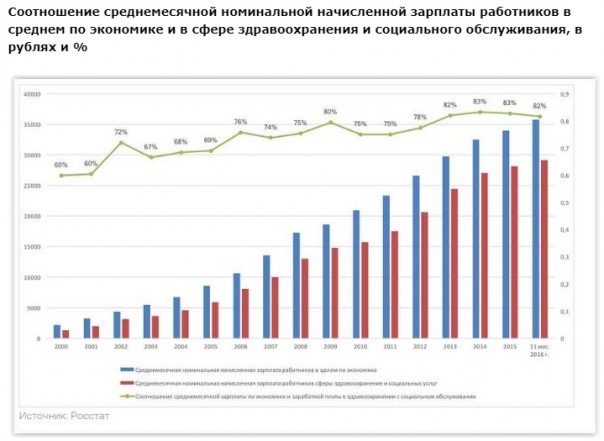 В соответствии с «майскими» указами Владимира Путина также реализована программа по увеличению заработной платы медицинским работникам. Выплаты врачам выросли на 200% от среднего жалования по стране.