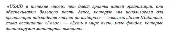 Кстати, о финансировании от USAID. В 2011 году фонд накануне президентских выборов в России скинул «Голосу» больше 40 млн. долларов. В этом году явно щедрот окажется в разы больше. И, самое главное, все партнеры «Голоса» связаны с американскими фондами и прочими структурами, контролируемыми Госдепом США. О чем это говорит? На предстоящих выборах Госдепу хочется устроить провокации руками наблюдателей «от Навального»? Иной пользы от них нет.