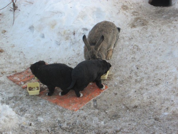 В Омской области кролик спас щенков и заменил им убитую собаку