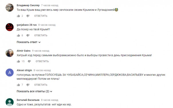 Кастрюли впали в истерику на ютюб-канале с роликом выступления Путина в Севастополе
