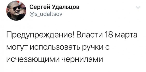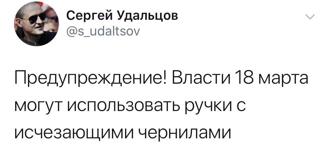 По мнению лидера Левого фронта Сергея Удальцова, "выборы не были конкурентными и честными, признавать их итоги категорически нельзя". Он считает, что "при равноправной кампании был бы второй тур". Удальцов написал в соцсети "ВКонтакте" о "бандитских фальсификациях", да ещё "в массовом количестве". Его близкий соратник Леонид Развозжаев гневно писал в Facebook, что "Путина в бюллетенях практически нет! Все кто угодно, но Путин явно проигрывает всем кандидатам. Как же он тогда победил официально?". По версии Развозжаева, "даже техника настроена на 100 % голосов за Путина". Одновременно он назвал сторонников бойкота выборов "злостными провокаторами, предателями и пособниками кремлёвской банды", ведь, сетует он, "была возможность реально раскачать лодку". Теперь Развозжаев готовится к неким грозным событиям: "У нас время осталось совсем чуть-чуть. Нам нужно готовиться к серьёзным событиям, а не мусолить из пустого в порожнее".