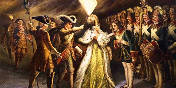 Елизавета во главе своих гвардейцев на пути в Зимний дворец