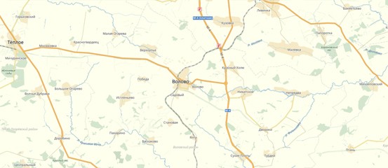 А вот фрагмент карты конца XVIII в. в районе Богородицка. В правом нижнем углу мы видим д. Плоты, она же присутствует и на современных картах.