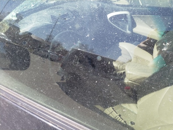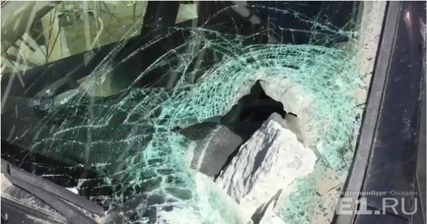 Отмечается, что осколки попали в лобовые стекла нескольких автомобилей, оставив отверстия и трещины.
