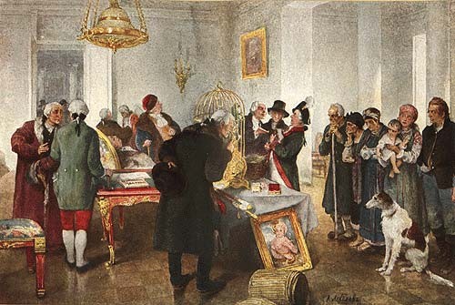 Интересно, что наиболее преданным последователем идей Петра Великого стал наследник престола в другом государстве — молодой кронпринц Пруссии Фридрих Вильгельм. Встреча с русским царём в 1712 г. произвела на него колоссальное впечатление. Став королём, во всех реформах он подражал своему кумиру.