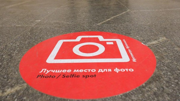 Ну, и, конечно, нельзя не сказать о развлекательной программе, которая будет проходить в городах ЧМ. Так, в Москве хорошие места для селфи будут обозначены наклейками. Выглядеть они будут следующим образом: