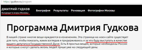 На его сайте есть программа в Госдуму, оставшаяся с тех пор, когда он баллотировался туда от «Яблока». На сайте партии «Гражданская инициатива», переименованной в «Партию перемен», председателем которой стал Гудков, ее тоже не обнаружилось.