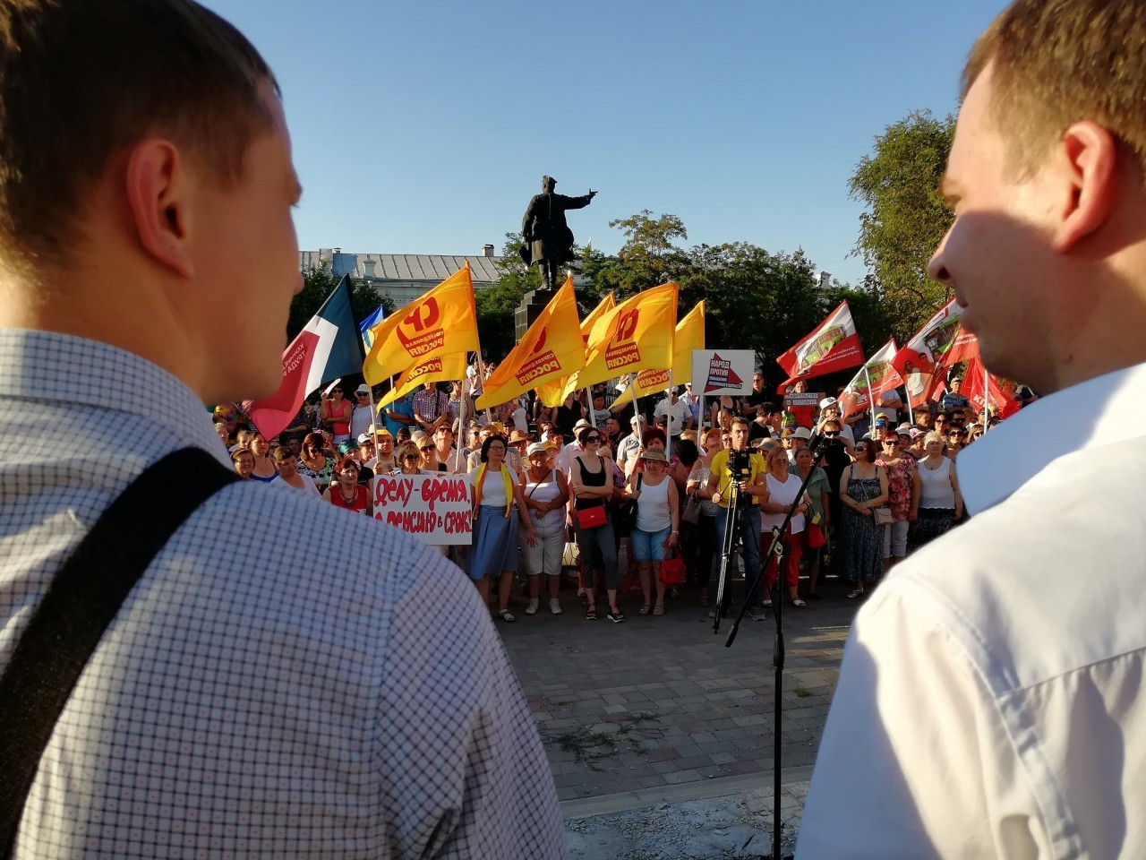 Судя по тому, что в сквере Кирова вчера практически не осталось свободных мест, можно констатировать, что пенсионная реформа тревожит астраханцев куда больше чем «Большая вода», и даже чем недавнее урезание льгот ветеранам. Участие в акции протеста приняли сторонники политических и общественных движений самой различной направленности, да и просто масса неравнодушных горожан. Единым фронтом (что бывает нечасто) против инициативы федерального правительства выступили представители всех представленных в региональном парламенте оппозиционных партий — «Справедливой России», ЛДПР и КПРФ.