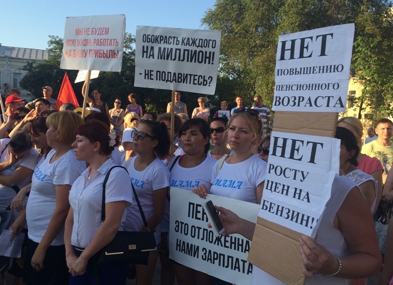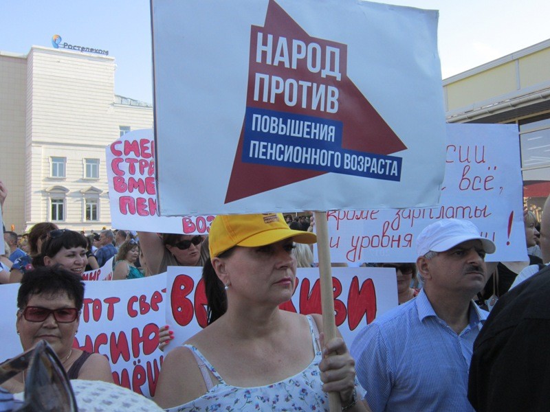 К обсуждению законопроекта, повышающего пенсионный возраст в России для мужчин до 65 лет, а для женщин до 63 лет, депутаты Государственной Думы РФ должны приступить 19 июля. В преддверии этого по всей стране проходят акции протеста. В стороне не остался ни один регион. На сегодняшний день подано более 150 заявок на проведения митингов под общим названием «НАРОД ПРОТИВ повышения пенсионного возраста». Астрахань одна из первой присоединилась к акции. В сквер им. Кирова вышло более 2 тысяч жителей нашего региона, возмущенных предстоящим повышением пенсионного возраста.